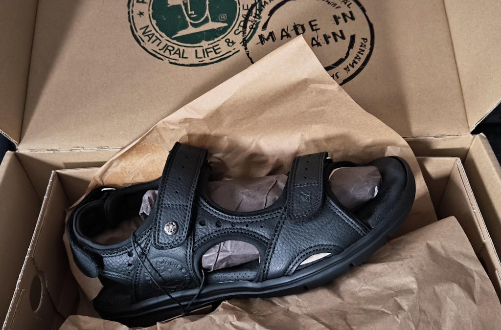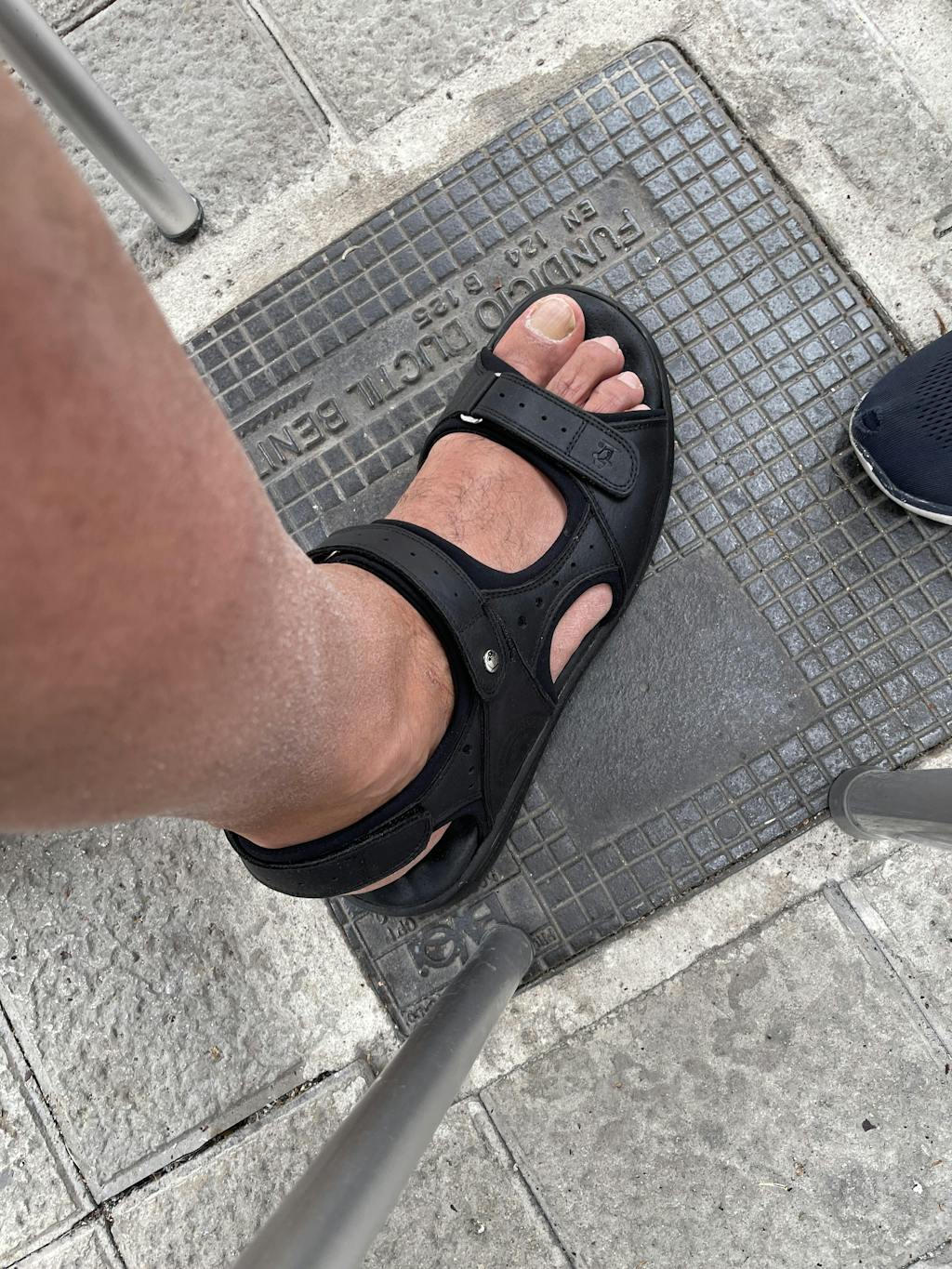 Sandalia de hombre. Piel Napa Grass Negro WATERPROOF. Cierre de velcro. Forro interior de Lycra. Plantilla anatómica con acolchado Softsystem, amortigua la pisada durante todo el día. Suela de poliuretano, flexible y resistente. Altura tacón: 5 cm. 100% Hecho en España.